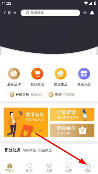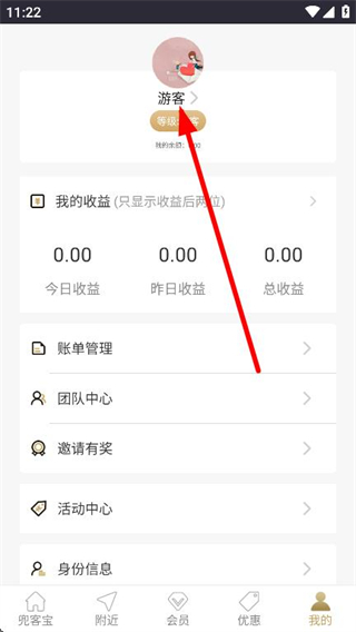1、打开兜客宝APP,点击底部导航栏的我的选项。
