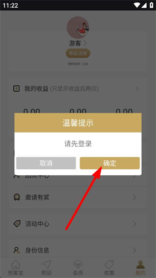 3、弹出请先登录的温馨提示窗,点击确定按钮。
