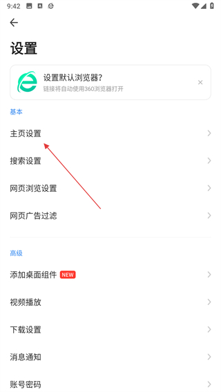3、进入设置页面后,在基本分类下点击主页设置选项。