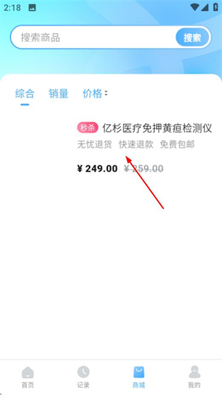 2、在商品列表页面选择目标商品,进入该商品详情页面。