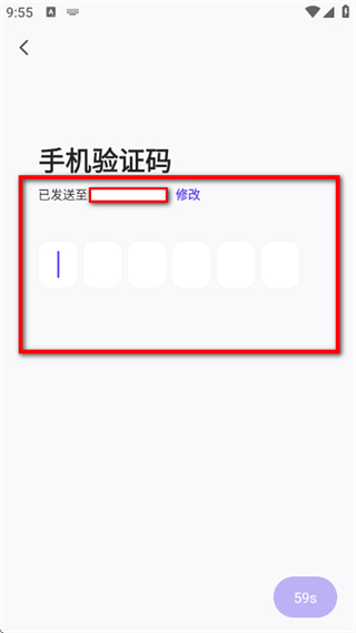4、在手机验证码页面,将发送至对应手机号的验证码填入输入框,完成验证步骤。