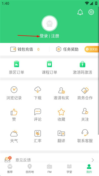 3、在我的页面中,找到登录|注册区域,点击该区域进入对应的登录界面。