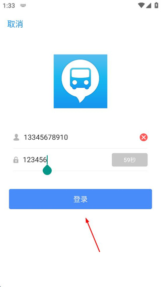 4、确认手机号与验证码填写无误后,点击登录按钮完成长沙公交的登录操作。