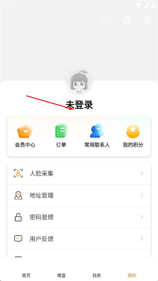 3、在我的页面中,找到未登录区域,点击该区域进入对应的登录注册界面。