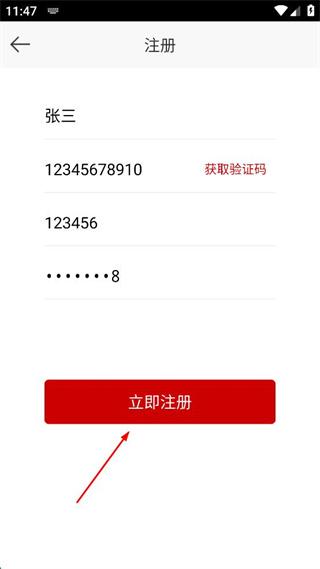 4、确认注册信息填写完整无误后,点击立即注册按钮完成账号注册操作。