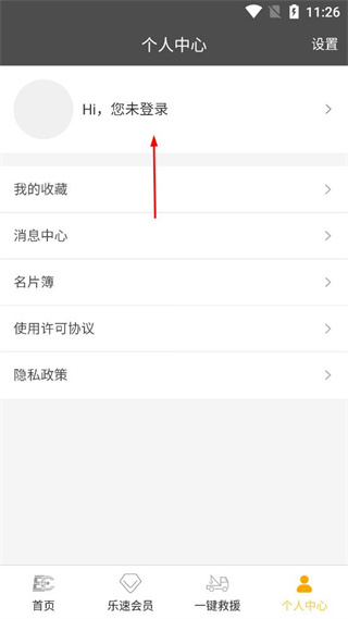 2、在个人中心页面,找到Hi您未登录的区域,点击该区域进入登录界面。