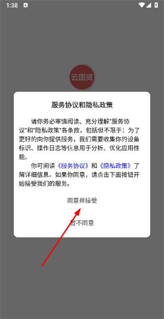 1、在使用协议隐私政策弹窗中点击同意并接受,进入登录页面。