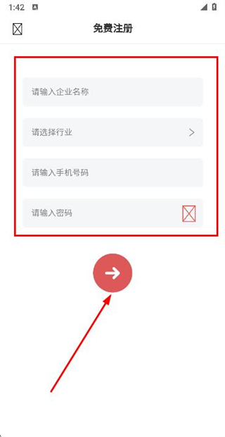 3、在注册账号页面填写信息后,点击下方图标完成注册操作。