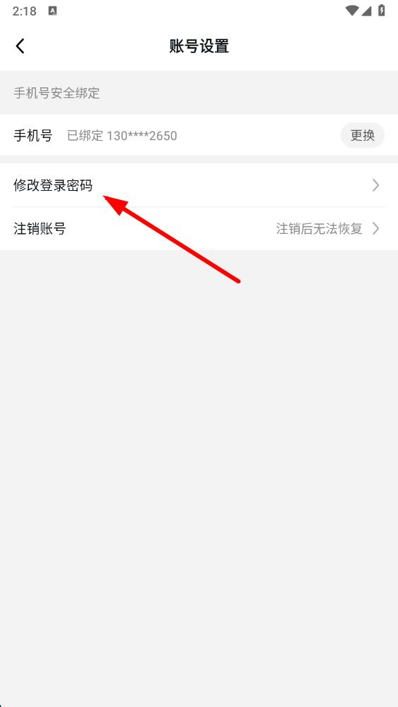 4、在账号设置页面中,点击修改登录密码选项,进入修改密码页面。