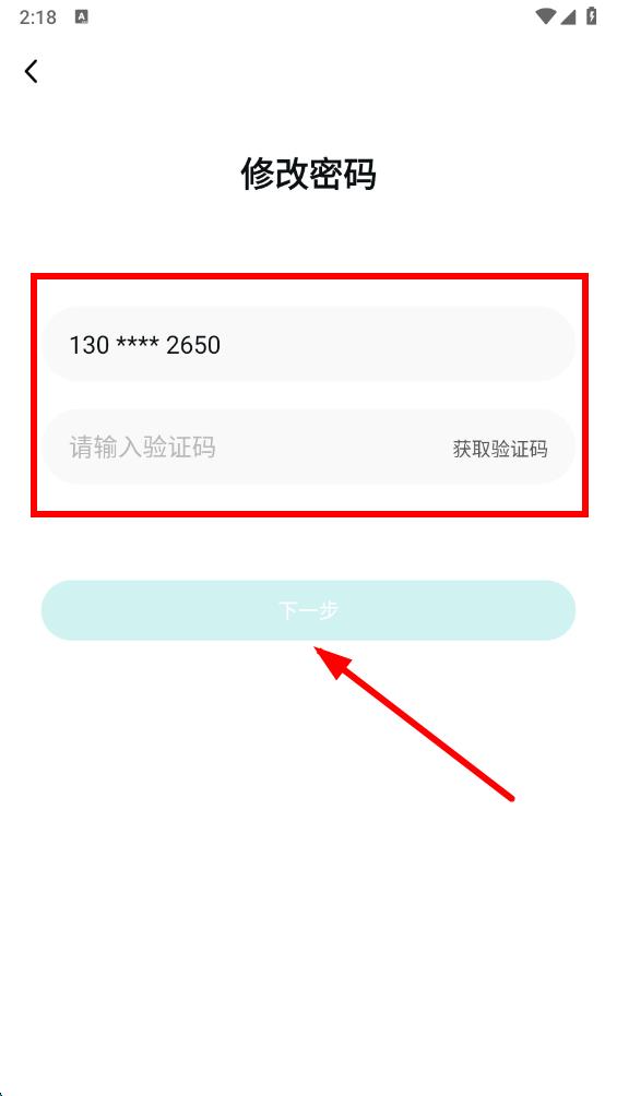 5、在页面输入已绑定的手机号获取验证码,输入验证码后,点击下一步,按照后续提示完成密码修改。