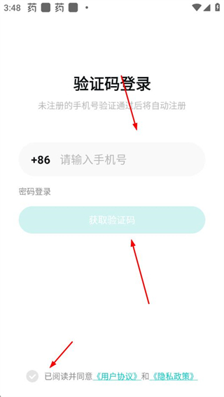 2、输入手机号,勾选已阅读并同意后点击获取验证码。
