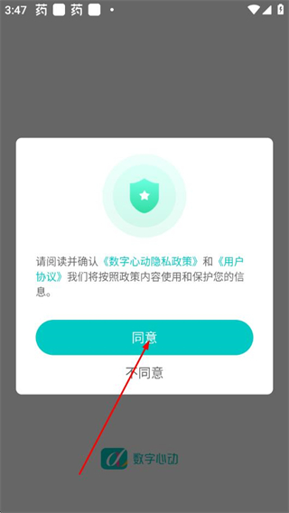 1、打开数字心动APP,在弹出的窗口中点击同意按钮。