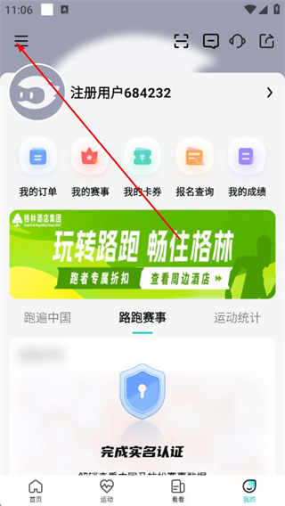 2、在我的页面中,点击左上角的三条横线图标,打开侧边菜单栏。