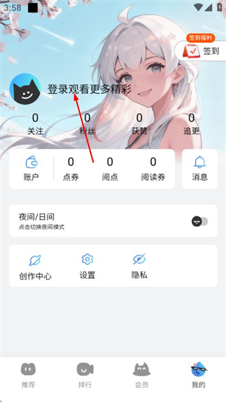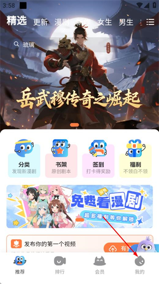 1、在光鸟动漫推荐页面点击我的选项,进入个人中心页面。