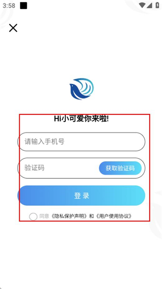 3、在登录页面填写信息并勾选协议后,点击登录完成账号登录。