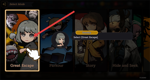 2、在模式选择页面,点击“Great Escape”模式对应的选项,进入该玩法的流程。