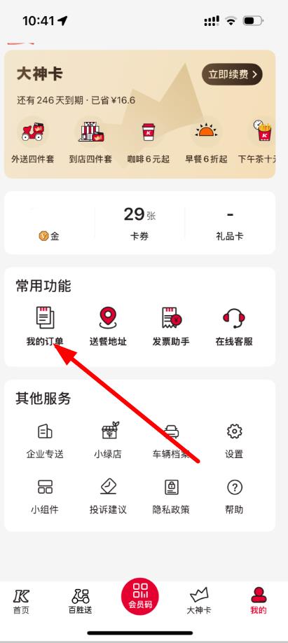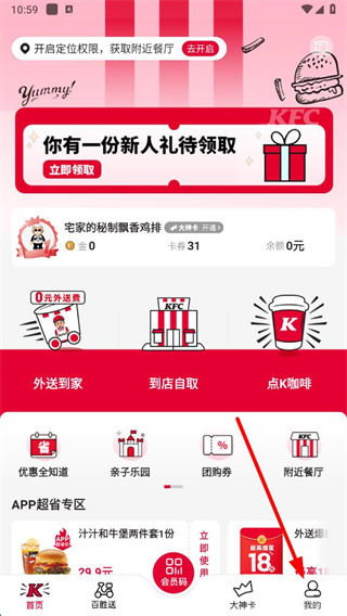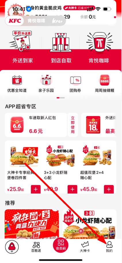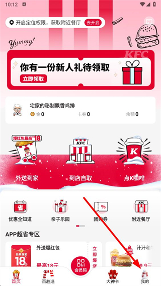 1、打开肯德基APP后,在底部导航栏找到我的选项并点击。