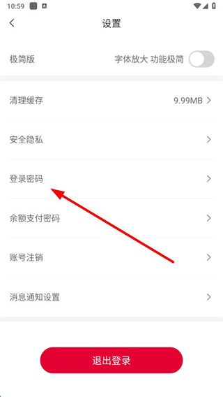 3、在设置界面中,点击登录密码选项,进入重置登录密码页面。