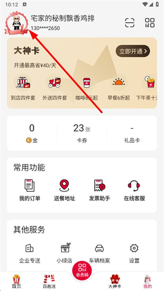1、打开肯德基app,点击底部导航栏中的我的进入个人页面。