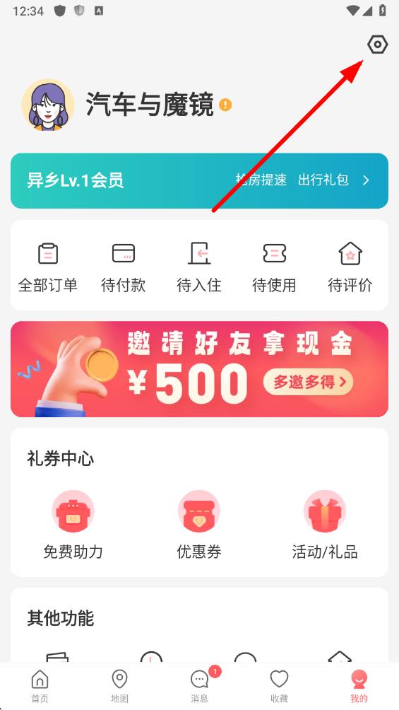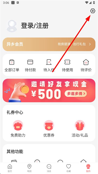 1、在异乡好居app我的页面,点击右上角设置图标,进入设置界面。
