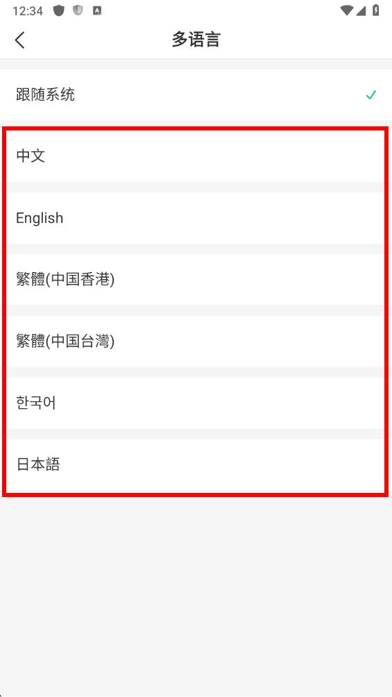 4、在多语言页面中,选择你想要设置的语言,点击对应选项即可完成语言设置。
