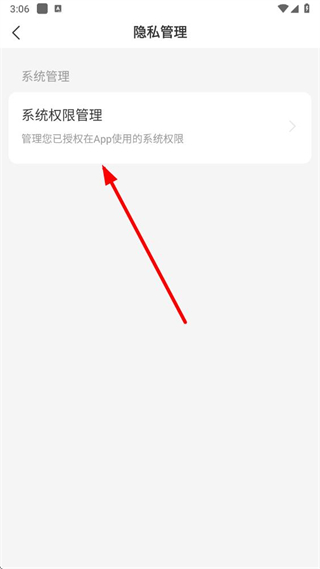 3、在隐私管理页面,点击系统权限管理选项,进入权限设置相关界面。