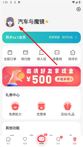 2、进入个人中心后,点击顶部的头像昵称区域,进入编辑资料页面。