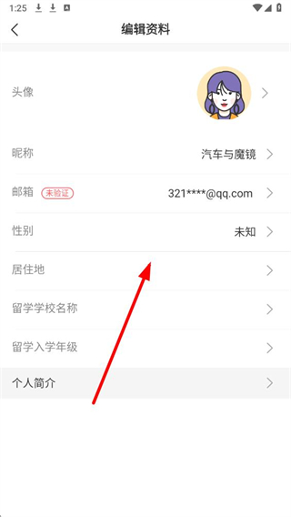 3、在编辑资料页面,选择要修改的信息项,完成信息修改后,即可完成个人资料的更新操作。