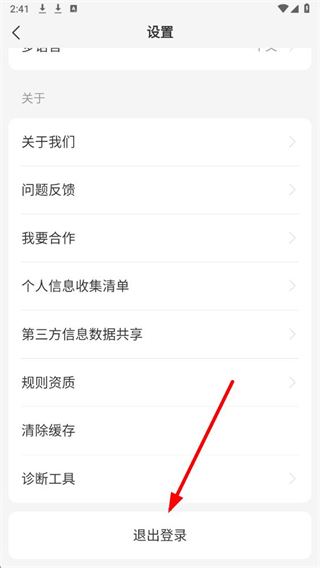 3、在设置页面,下滑至底部点击退出登录按钮。