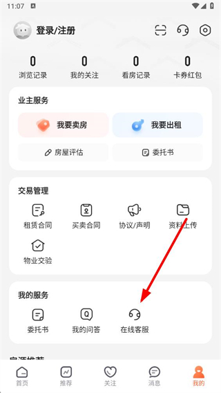 2、在个人页面点击在线客服选项,进入在线客服页面。