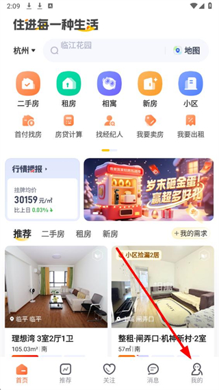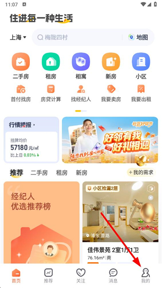1、打开我爱我家app,点击底部导航栏我的选项,进入个人页面。