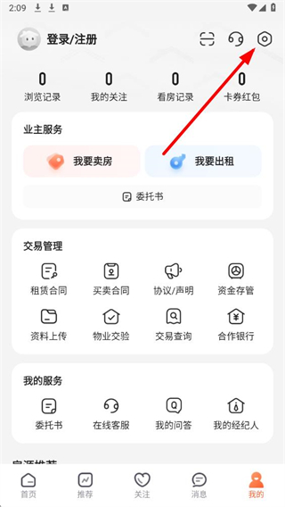 2、在我的页面中,点击右上角的设置图标,进入设置界面。