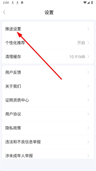 3、在设置页面,找到并点击推送设置选项,进入推送设置页面。