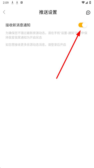 4、在推送设置页面,点击接收新消息通知右侧的开关按钮,即可关闭消息通知功能。