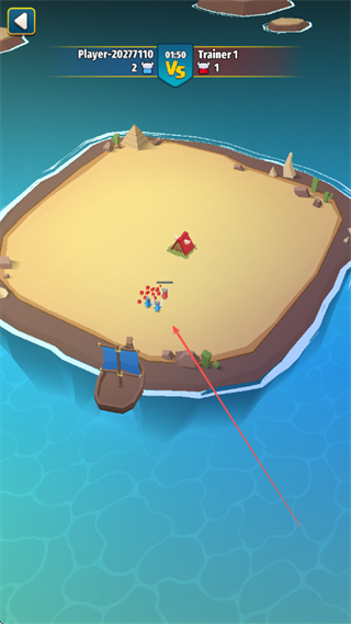 1、操控己方单位从船坞出发,向岛屿上的帐篷区域移动,准备对战Trainer1。