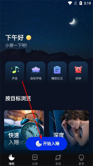 1、打开Sleep Monitor,在睡眠页面点击开始入睡。