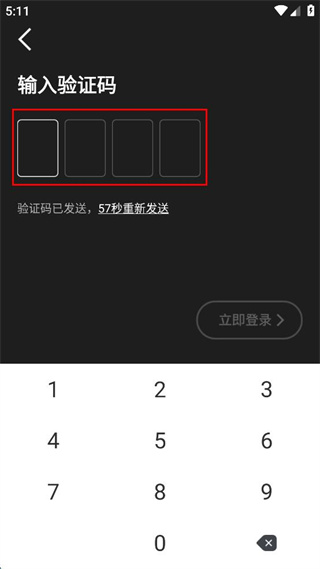 4、在输入验证码页面,将收到的验证码依次填入对应的输入框,随后点击立即登录按钮。