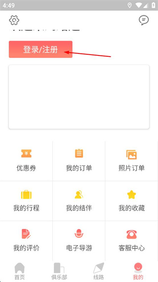 2、在个人中心页面里,找到登录/注册按钮,点击该按钮进入软件的登录相关页面。