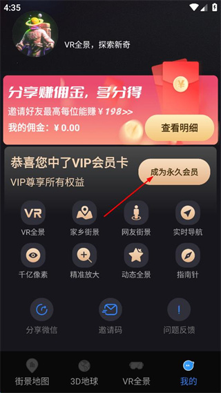 3、在个人中心页面里,找到成为永久会员按钮,点击该按钮进入会员开通相关页面。