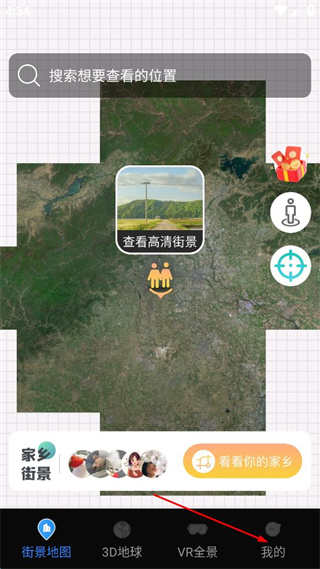 2、进入街景地图页面,找到底部的我的选项,点击该选项进入对应的个人中心页面。