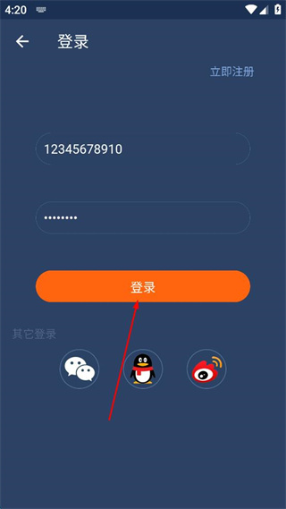4、确认用户名和密码都已正确填写后,点击页面中的橙色登录按钮,完成登录操作进入软件。