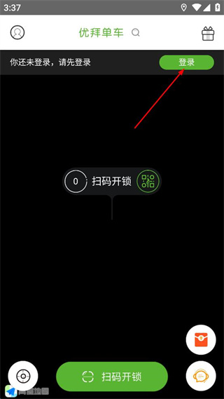 2、在主页面上方,找到显示你还未登录请先登录旁的登录按钮,点击该按钮。