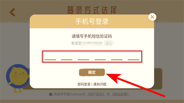 4、将收到的验证码填入栏,点击确定,即可完成CoStudy的账号登录。