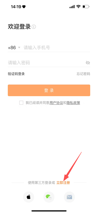 2、随后在欢迎登录页面,点击立即注册选项,即可进入账号注册的操作页面。