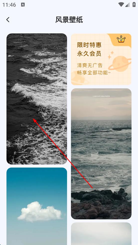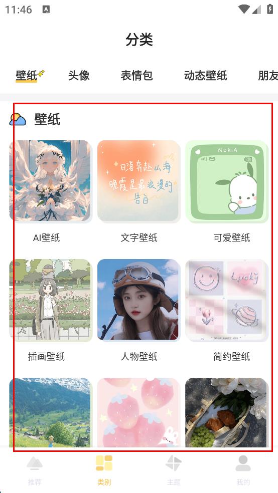 1、打开壁纸软件,进入“分类”页面,在壁纸分类区域中,找到并点击自己感兴趣的分类,进入该壁纸展示页面。