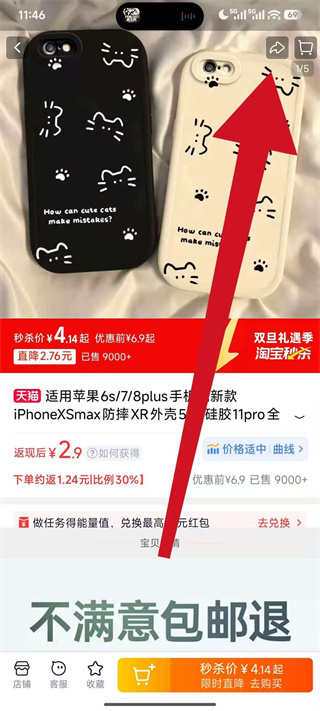 4、在商品详情页面,找到右上角的分享图标并点击,弹出分享选项菜单。