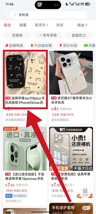 3、在搜索结果列表中,点击要分享的商品,进入该商品的详情页面。