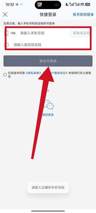 4、根据要求填写相关信息,勾选相关协议,最后点击验证码登录,即可完成账号登录。