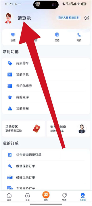 1、打开二手车之家,进入首页后点击底部导航栏的我的,进入个人中心页面。