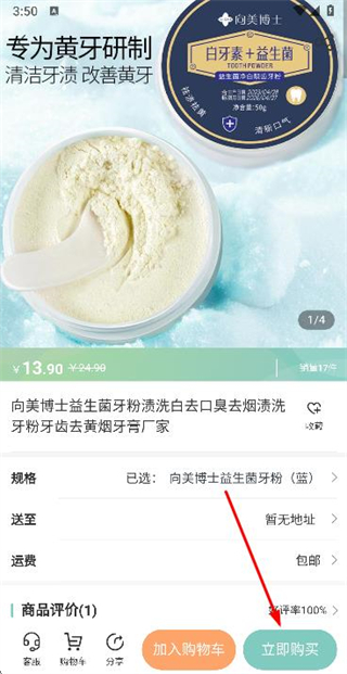 3、在商品详情页面点击底部的立即购买按钮,完成该商品的购买操作。